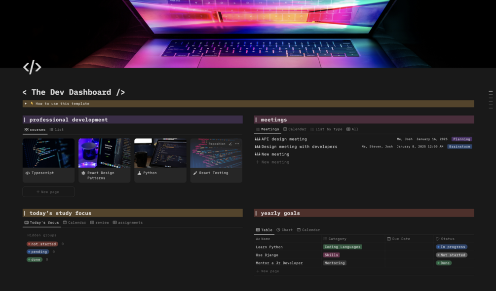The Dev Dashboard is the only template you need to stay organized at work in 2025!